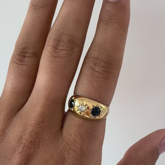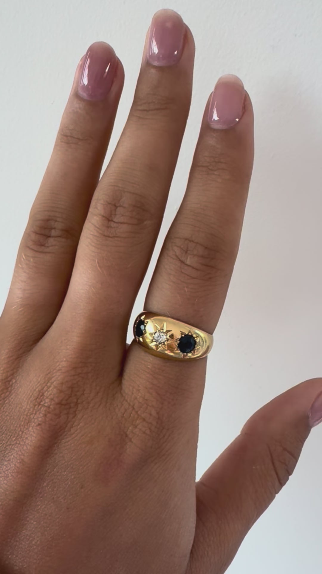 Antiker 18kt Gold Gypsy Ring mit Diamante und Saphiren