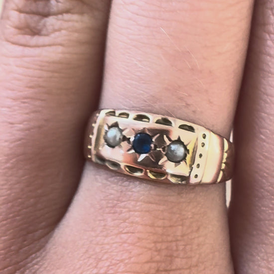9kt Rosé Gold Gypsy Ring mit Saphir und Saatperlen