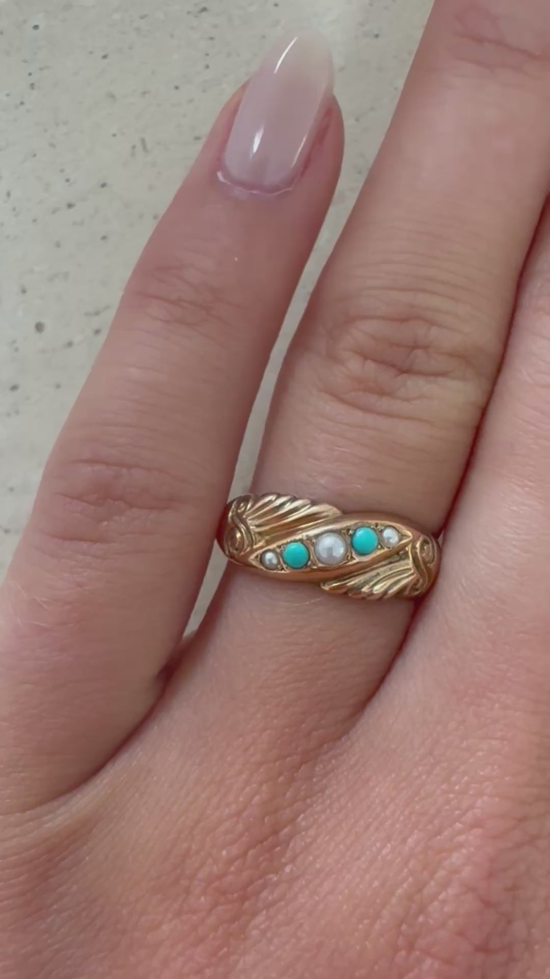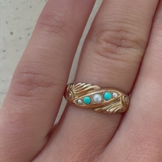 Antiker 9kt Gold Ring mit Türkisen und Saatperlen