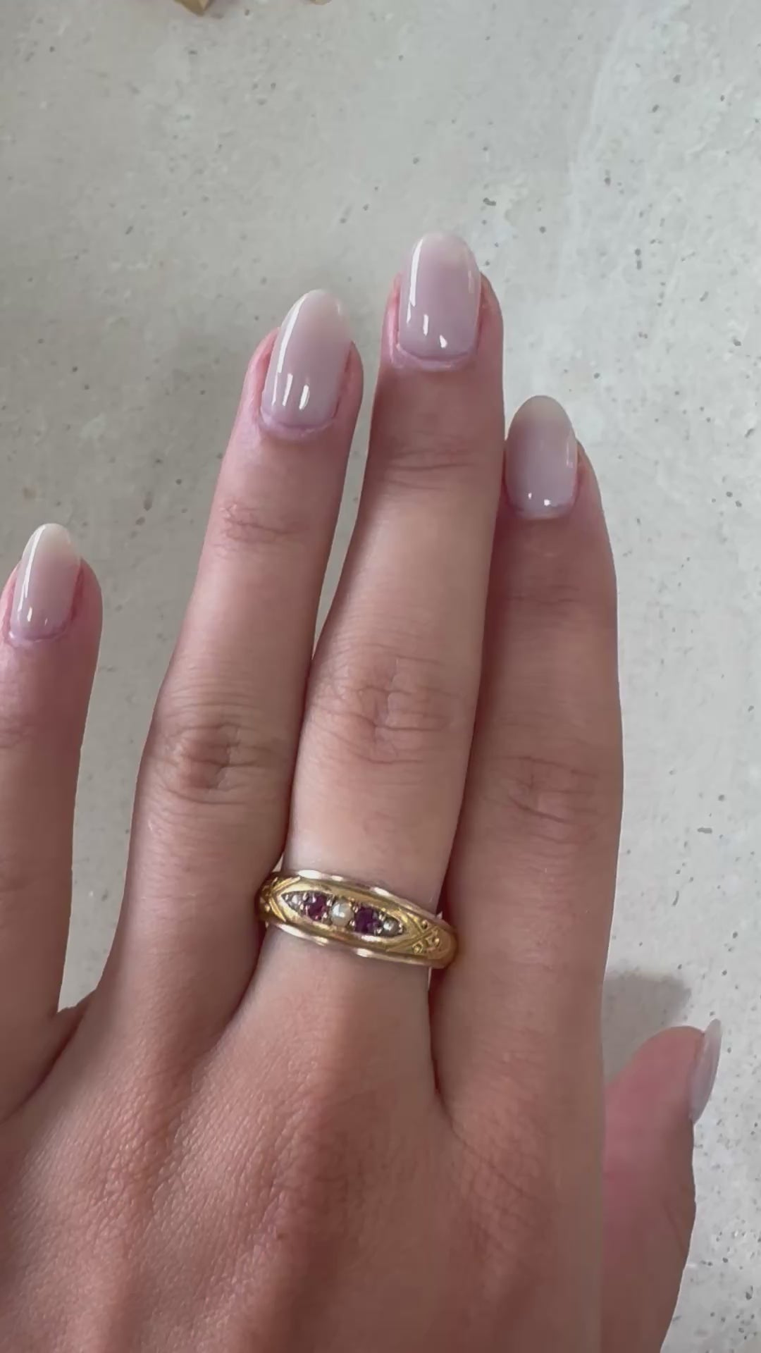 Antiquer 15kt Gold Ring mit Rubinen und Saatperlen