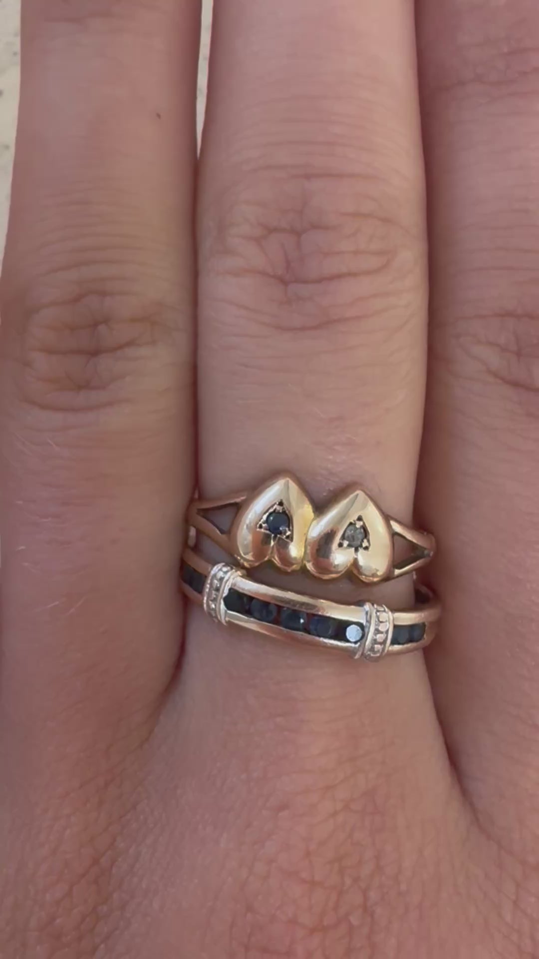 Diese tief symbolische Gestaltung war im Viktorianischen Zeitalter sehr beliebt und steht für zwei Seelen, vereint durch die Liebe – der Diamant für die Ewigkeit, der Saphir für Treue. 💫