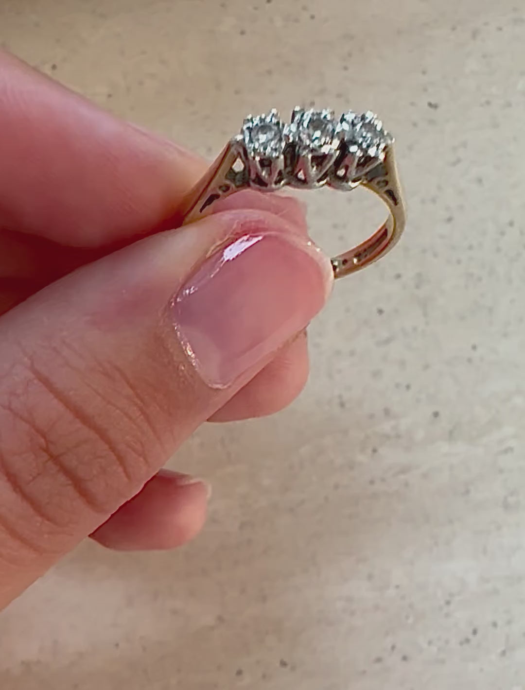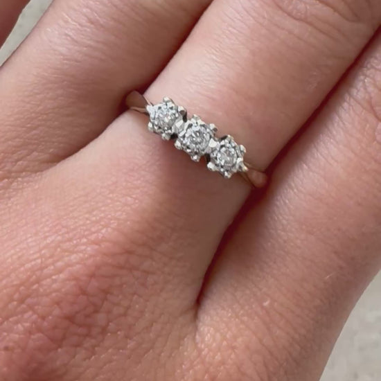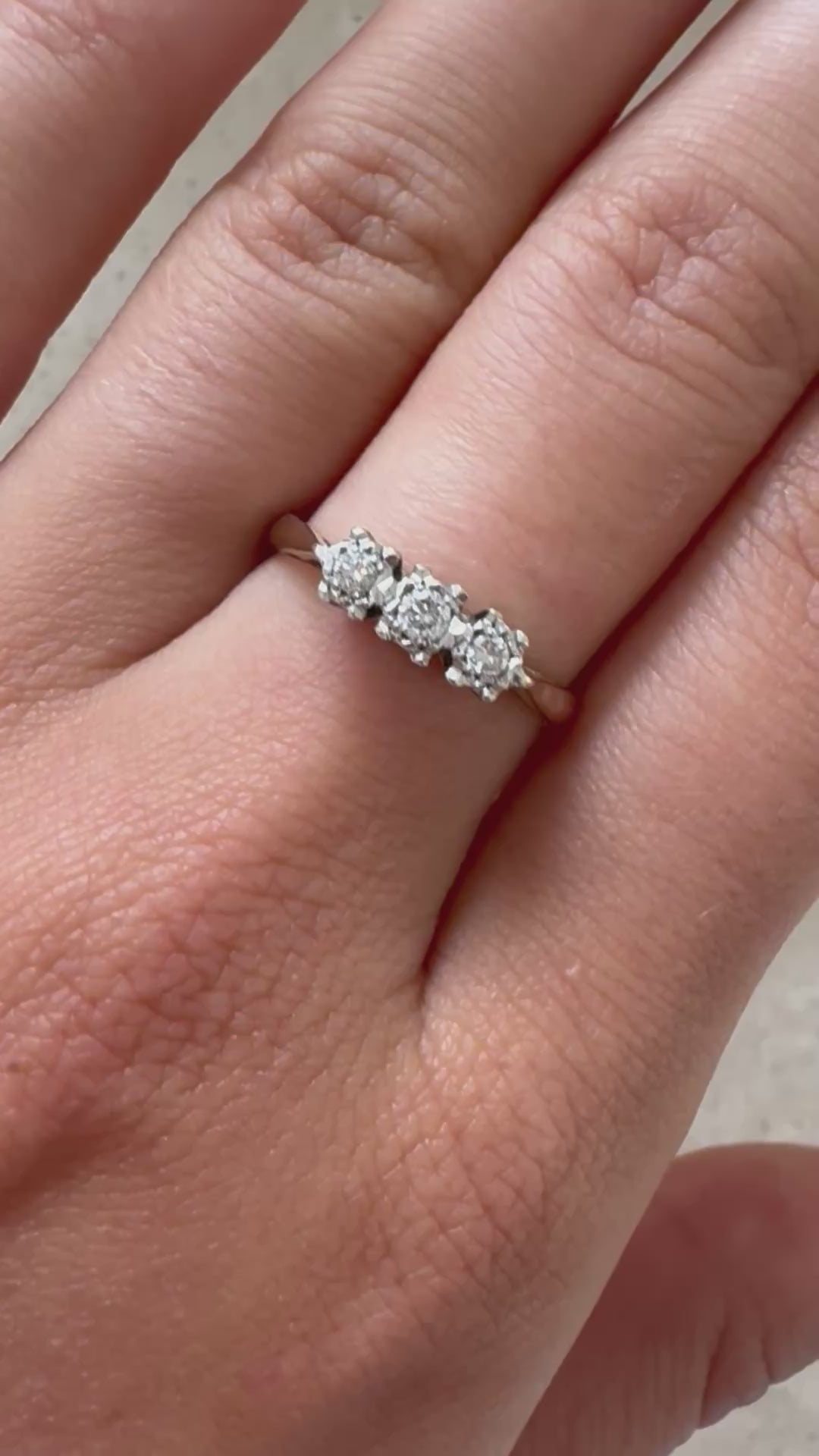 Vintage 9kt Trilogie-Ring mit Diamanten